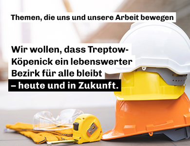 Wir wollen, dass Treptow-Köpenick ein lebenswerter Bezirk für alle bleibt – heute und in Zukunft. Seid dabei und gestaltet mit uns die Zukunft unseres Bezirks!