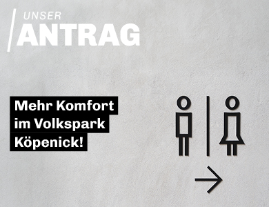 Der neu sanierte Spielplatz im Volkspark Köpenick wird täglich von vielen Familien besucht. Um den Aufenthalt angenehmer zu gestalten, haben wir beantragt, dass dort eine öffentliche Toilette errichtet wird.